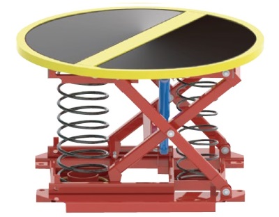 バネの力で自然に上下し、常に腰の高さでパレットへの荷運びできる機器です。