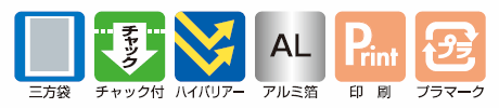 遮光性・防湿性・ガスバリアー性に優れたアルミを使用したチャック付き三方袋です。