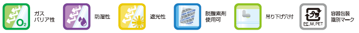 酸素バリア性に優れ、脱酸素剤を併用することにより、食品の保存性がさらに向上します。