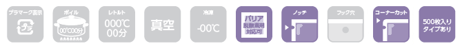 優れたバリアー性がありますので、食品の保存性を高めるとともに、風味を逃しません。