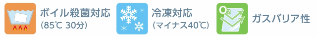-40℃の冷凍から85℃×30分のボイル殺菌に対応しています。