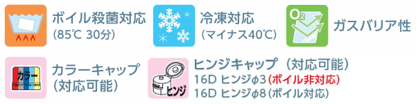 ボイル殺菌(85℃ 30分)、-40℃の冷凍に対応しております。