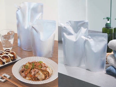 アルミ箔を使用したコーナースパウト付きスタンドパックです。