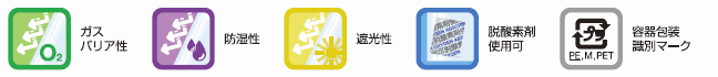 アルミを使用しておりますので、ガスバリア性、防湿性、遮光性に優れております。