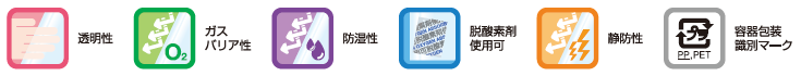 水蒸気と酸素に対するバリア性に優れており、脱酸素剤の使用ができます。