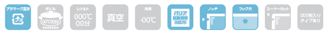 ベリーパック(富士カガク) バリアー性 フック穴付き 三方袋 (モノトーン印刷) サイズ表