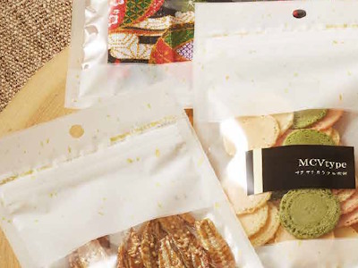 マットフィルムを使用して、柔らかな見た目を演出できるチャック付き三方袋です。
