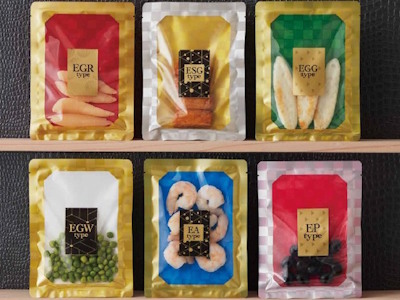 バリアナイロンをベースにLLDPEを貼り合わせ、和柄印刷を施したラミネート袋です。