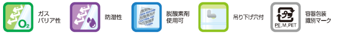 表面の透明フィルムは透明蒸着PETを採用しておりますので、バリア性があります。