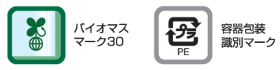 環境対応型のインクでバイオマスマーク、容器包装識別マークが印字されております。