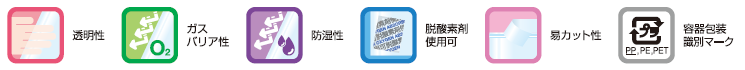 ガスバリア性、防湿性に優れて、脱酸素剤、乾燥剤の使用ができます。