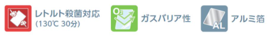 材質構成:PET12//AL9//ONY15//レトルトCPP60