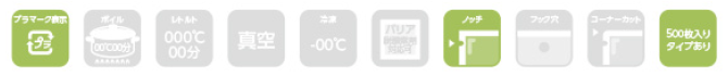再封性のあるチャック付きで、斜め切れを防止する加工をしてあります。