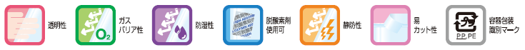 ガスバリア性、防湿性、静防性に優れて、脱酸素剤、乾燥剤の使用ができます。