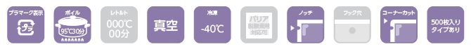 -40℃の冷凍から95℃30分のボイル殺菌にも対応しています。