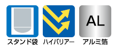 PET/アルミ/ポリエチレン構成のラミネートスタンドパック袋です。