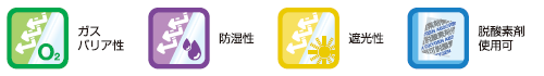 優れたバリアー性がありますので、食品の保存性を向上するとともに、風味を逃しません。