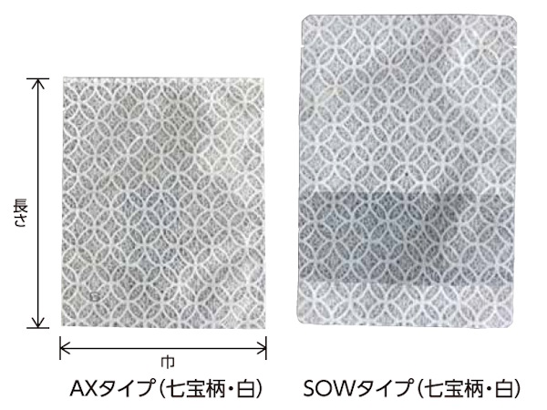 ○七宝柄を印刷し、表面の窓部分から中身が見えるデザインです。