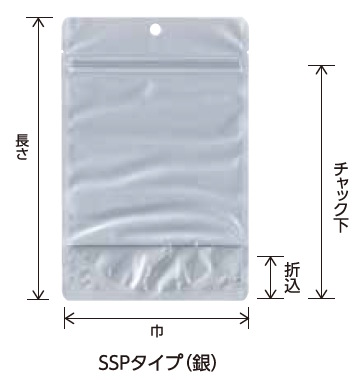ベリーパック(富士カガク) バリアー性 フック穴 チャック付き スケルトンシルバー スタンド袋 サイズ表