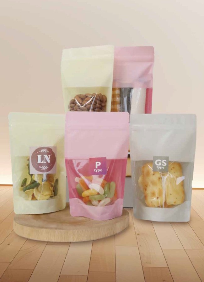 ○パステルカラー印刷のチャック付きのスタンド袋です。