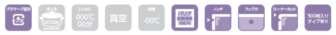 加工:サイド5mmシール、フック穴、コーナーカット、ノッチ付き