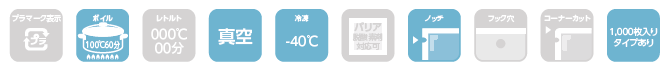 ○-40℃の冷凍から100℃×60分のボイル殺菌にも対応しています。