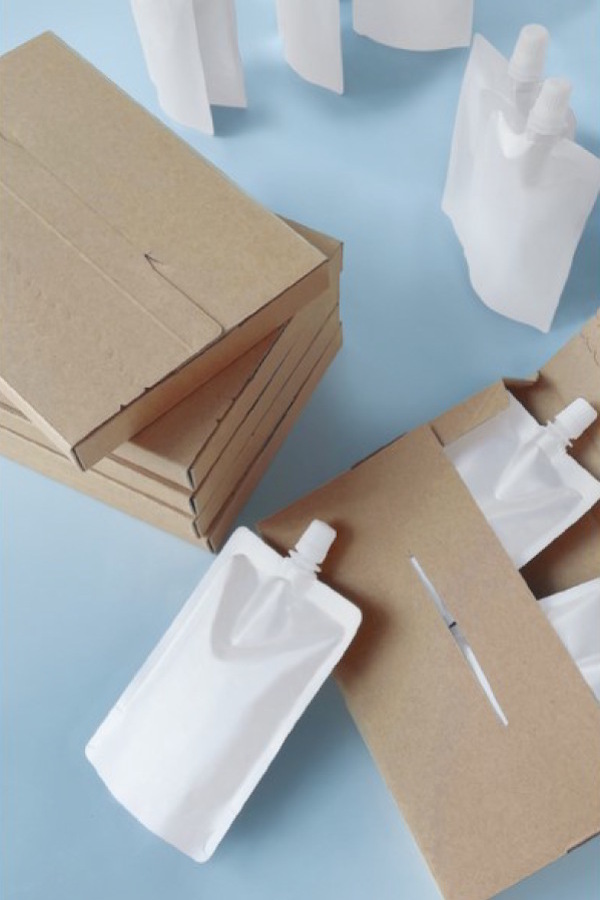 ○白色印刷のセンタースパウト付きスタンド袋です。