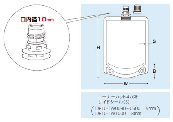 カウパック キャップ付き白印刷スタンド袋 夢パック DP10-TWシリーズ サイズ表