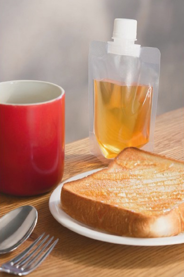 ○センタースパウト付きの透明スタンド袋です。
