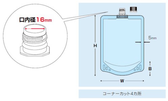 加工:コーナーカット4か所、5mmサイドシール、口内径16mm