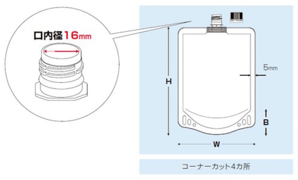 加工:コーナーカット4か所、5mmサイドシール、口内径16mm