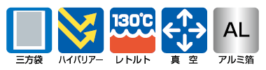 材質構成:PET12/ドライ/AL9/ドライ/NY15/ドライ/レトルトCP60