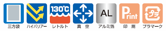 ○ハイレトルト(130℃×30分)にも耐える構成としておりますので、保存性を高めたい食品に効果的です。