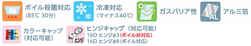 ○ボイル殺菌(85℃ 30分)に対応しております。
