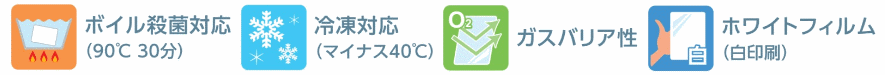 ○ボイル殺菌(90℃ 30分)に対応しております。