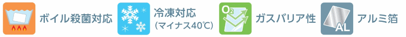 材質構成:PET12μ/ドライ/AL9μ/ドライ/ONY25μ/ドライ/LLDPE160μ