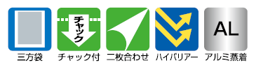 ○防湿性に優れバリアー性があるアルミ蒸着と透明PET蒸着の2枚合わせ袋です。