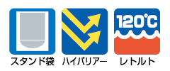 材質構成:透明PET蒸着12/ドライ/NY15/ドライ/レトルトCP80