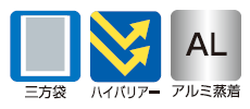 ○防湿性・ガスバリアー性に優れたアルミ蒸着構成の三方袋です。