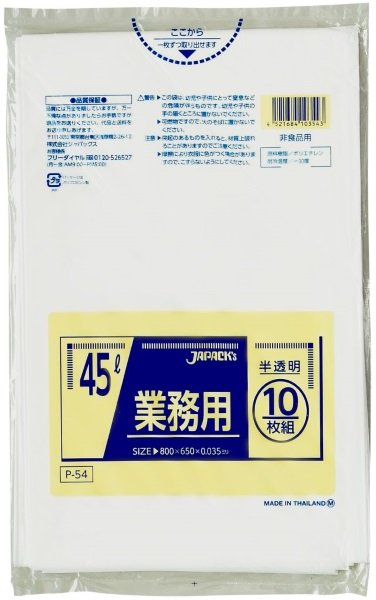 ジャパックス 業務用 スタンダードポリ袋 ゴミ袋 半透明 45L P-54 1ケース500枚入り ※別途送料 ※沖縄・離島地域配送不可 [P-54]