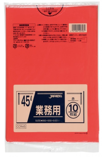 ジャパックス 業務用 スタンダードポリ袋 ゴミ袋 赤 45L CCR45 1ケース600枚入り ※別途送料 ※沖縄・離島地域配送不可 [CCR45]