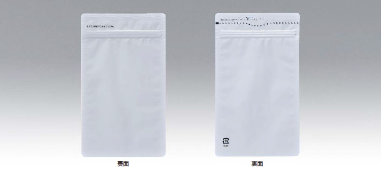 ○遮光性・防湿性・ガスバリアー性に優れたアルミを使用したチャック付き三方袋です。