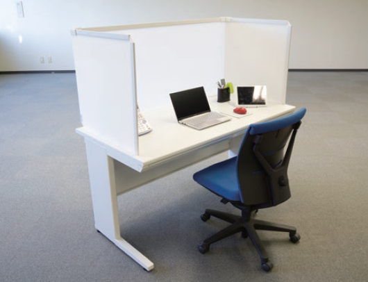 ○デスクに簡単に設置できる飛沫感染対策用のパーティションです。