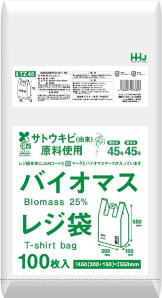 ハウスホールドジャパン 植物由来成分(バイオマス)25%含有 半透明レジ袋(西日本45号/東日本45号) TZ45 1ケース2,000枚入り ※個人宅別途送料