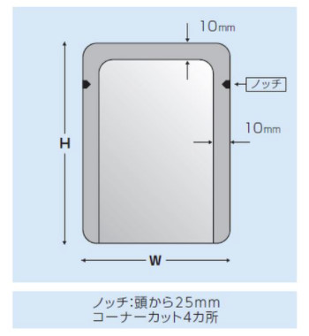 加工:10mmシール、コーナーカット4か所、ノッチ(頭から25mm)