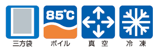 ○加熱殺菌(85℃×30分)対応で低コストタイプの真空パック用三方袋です。