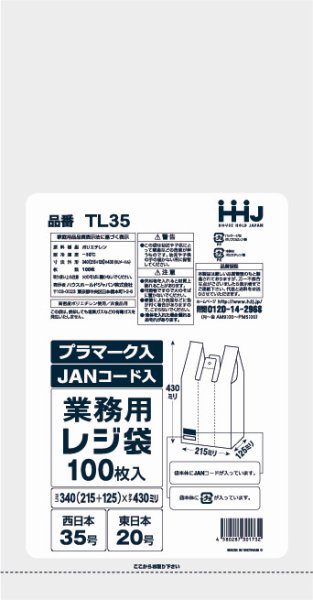ハウスホールドジャパン 白色レジ袋 JANコード印刷タイプ (西日本35号/東日本20号) TL35 1ケース3,000枚入り ※個人宅別途送料